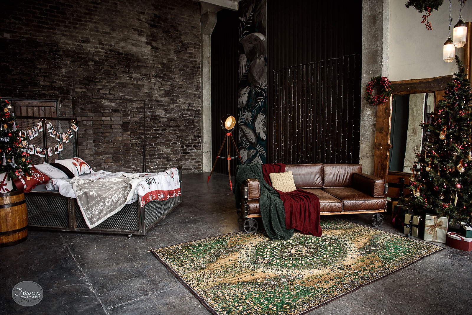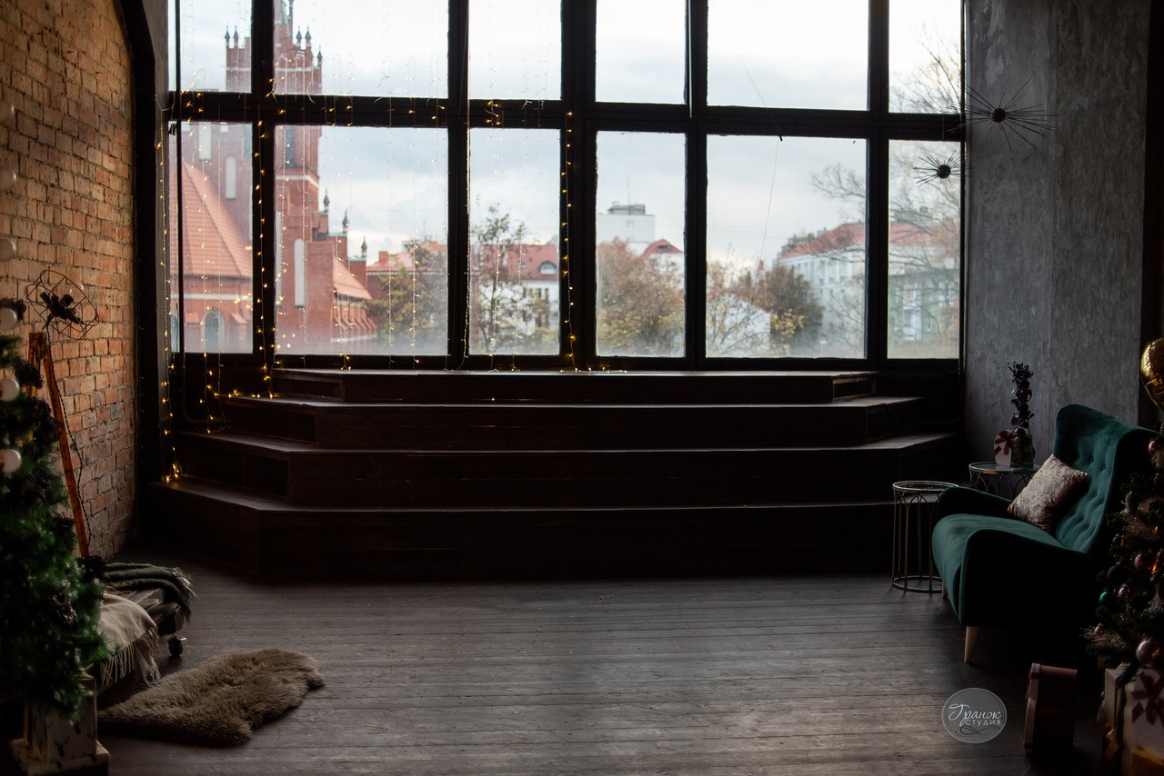Студия Гранж – это 110 кв.м. творческого пространства, 2 зала в разном стиле, 10 декорированных фотозон + бумажные фоны. Высокие потолки, огромные окна (6метров на 3м. и 2 метра на 3м.).