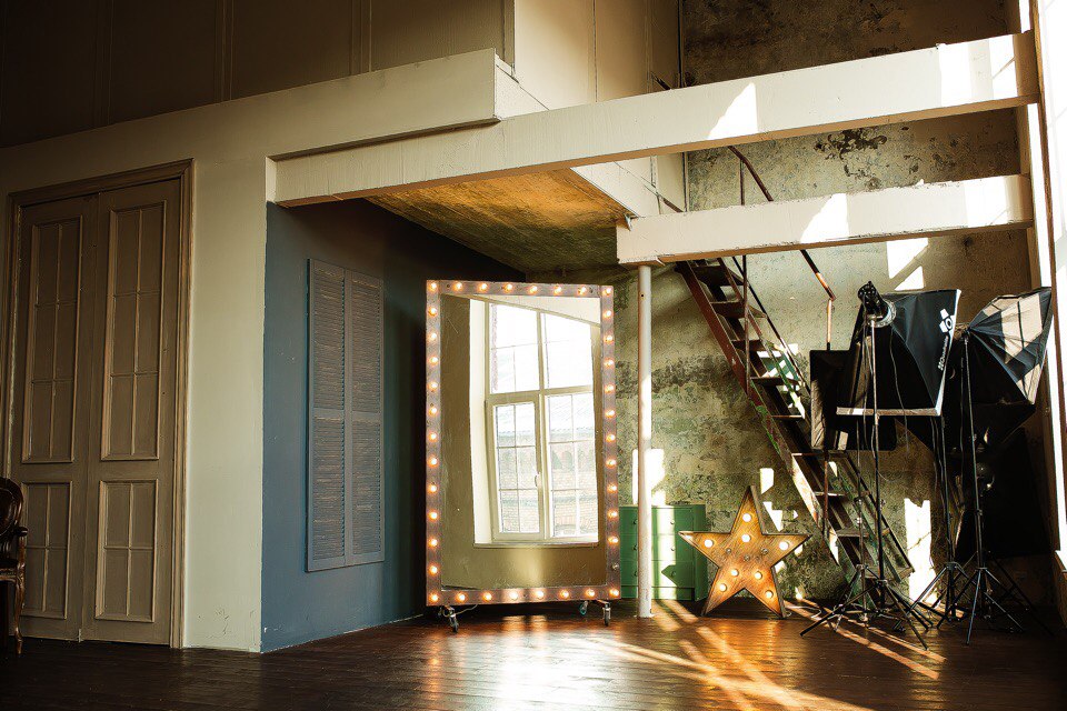 Общая площадь фотостудии более 75 кв. Два зала с красивым ремонтом, декором, разными по стилю. Площадь каждого более 30 кв.м. Большие окна во всю стену, позволяющие снимать в дневное время с естественным освещением. Высота потолков 3,75м. Два гримерочных места.